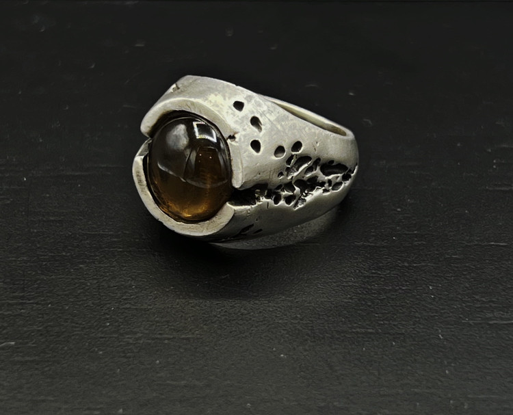 انگشتر نامتقارن با سنگ کوارتز دودی