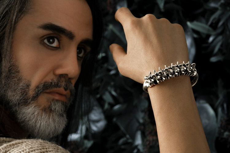 دستبند نقره با طراحی الهامگرفته از ستون فقرات، تاریک و ساختارمند