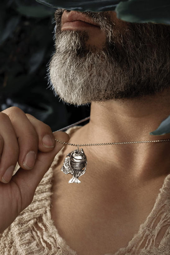 Piranha fish skeleton pendant AFTER LIFE COLLECTION Handcarved silver jewelry Material : silver sterling silver)