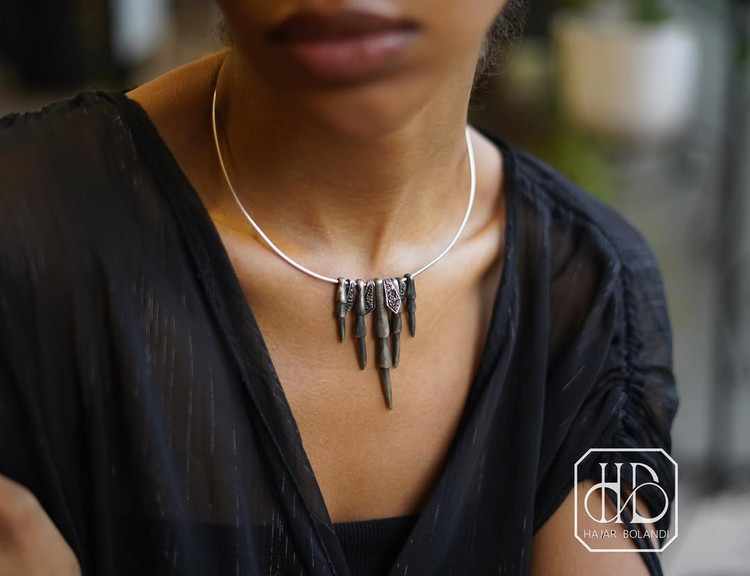 گردنبند چوکر نقرهای متحرک با طراحی دختر عنکبوتی